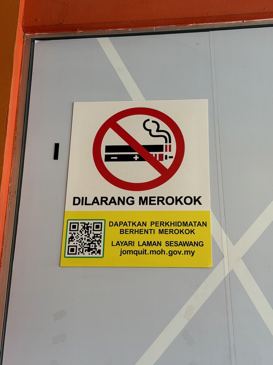Since Singapore banned vaping, we do not get these kind of signs. Really cute of them to use the positive and negative terminals of batteries as a way to represent vaping.