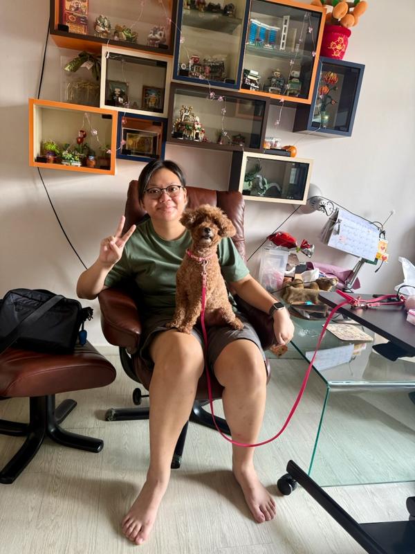 Esther and Donut at Ah Ma house. Esther tends to complain that Donut is rather hot and cold with her these days.