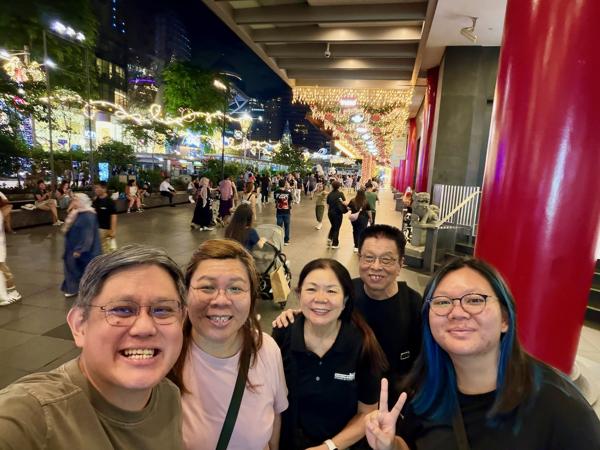 We were at Orchard road for dinner and took this photo with the Christmas decorations.