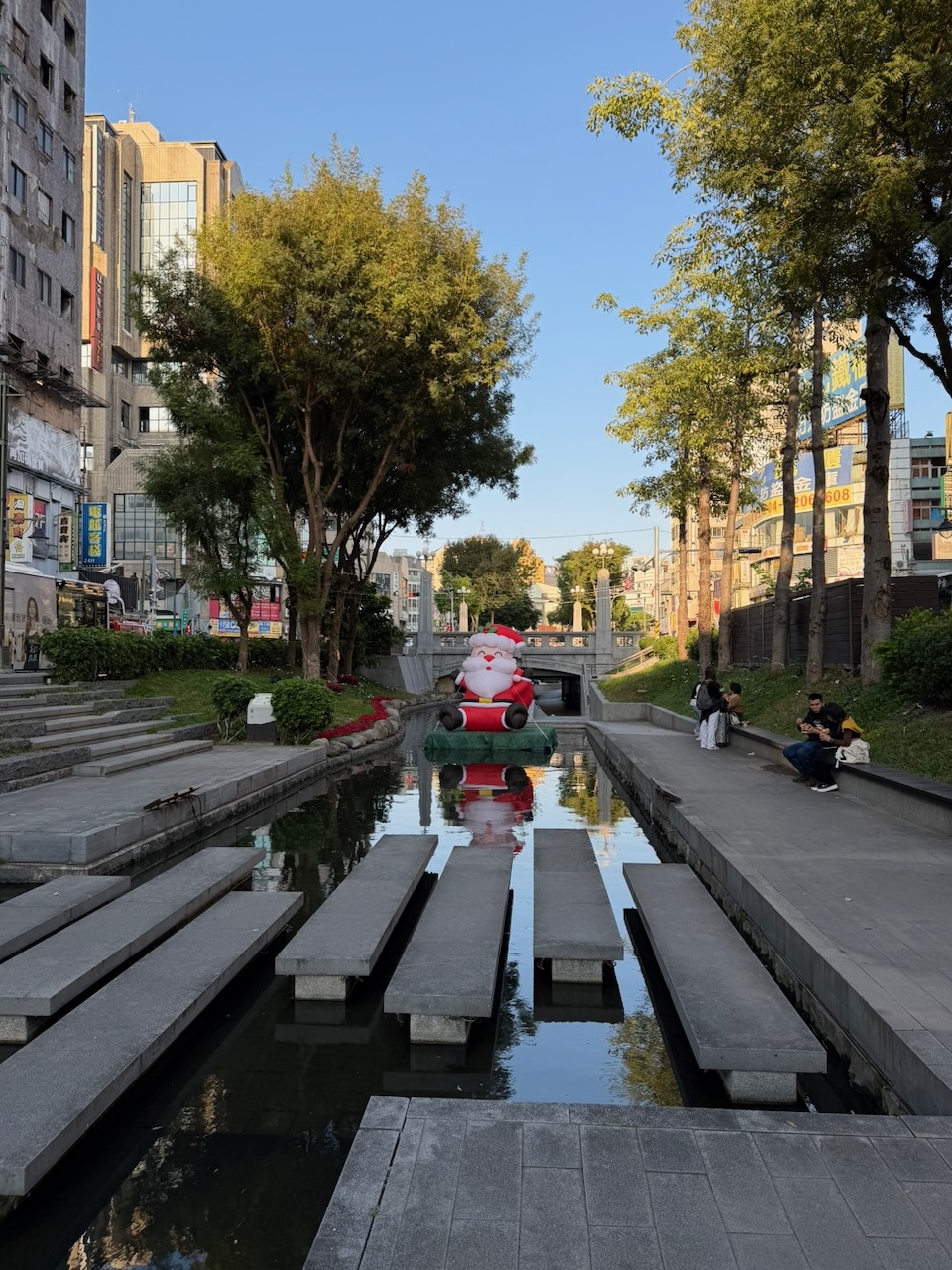 As the ice cream store did not have enough seating, we walked across the street to a small park which is built next to the canal which is quite nice. They had Christmas decorations too.