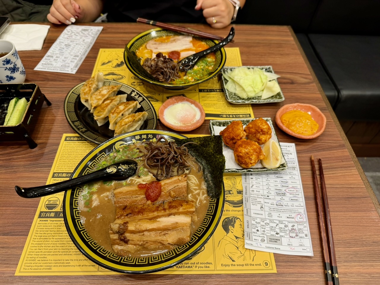 Found this very nice ramen place called Kanbe Ramen. They had instructions on how to eat ramen and a little drum to call for service. Great job and interesting things.
