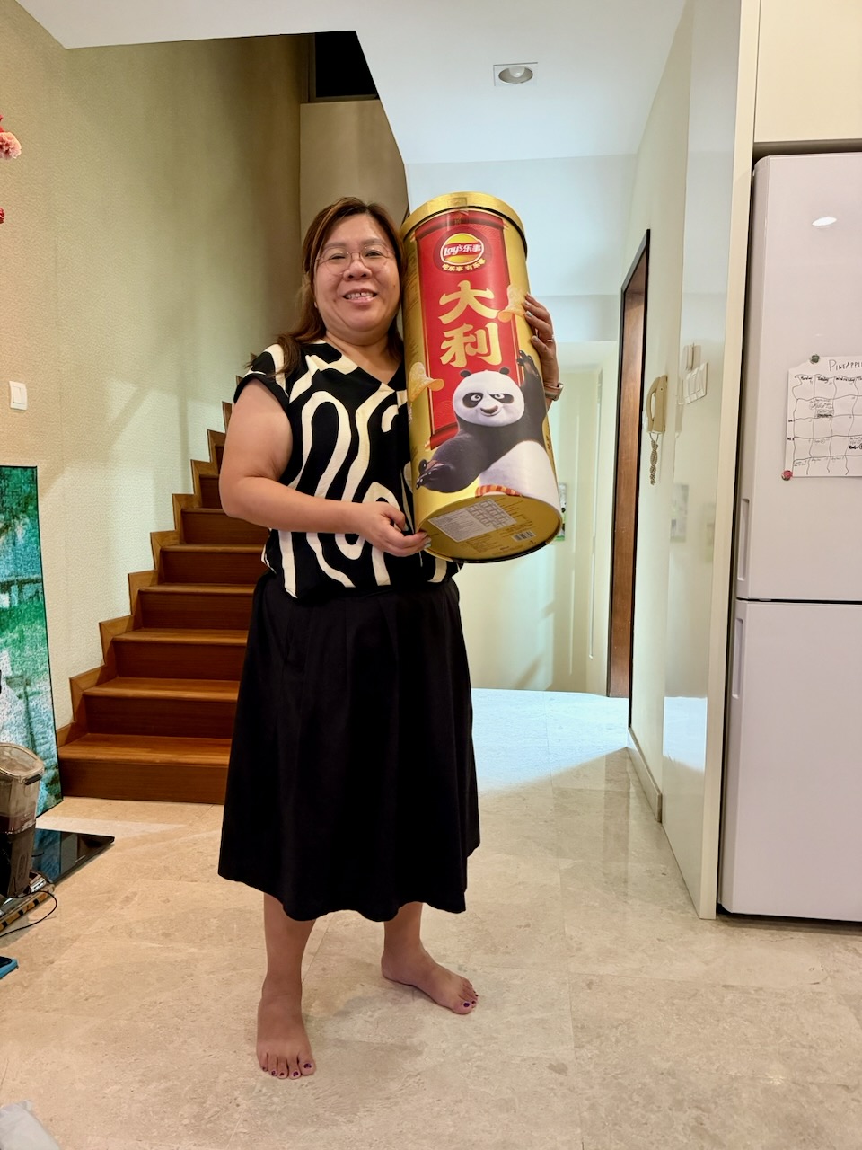 Pauline got this giant packaging of Lay's chips.