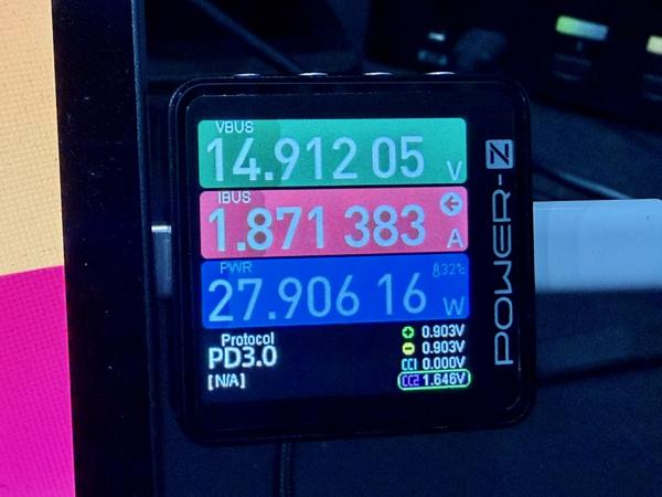 Got a POWER-Z KM003C to check on the actual power being used during charging. Works really well. This shows the charging of an iPad Pro showing that it is drawing about 28W which is pretty fast.