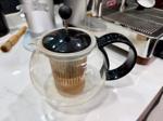 Pauline's teapot was really badly stained by tea :-) So I took the cleaning power which I use for my coffee equipment to clean it. Look how clean it is now.